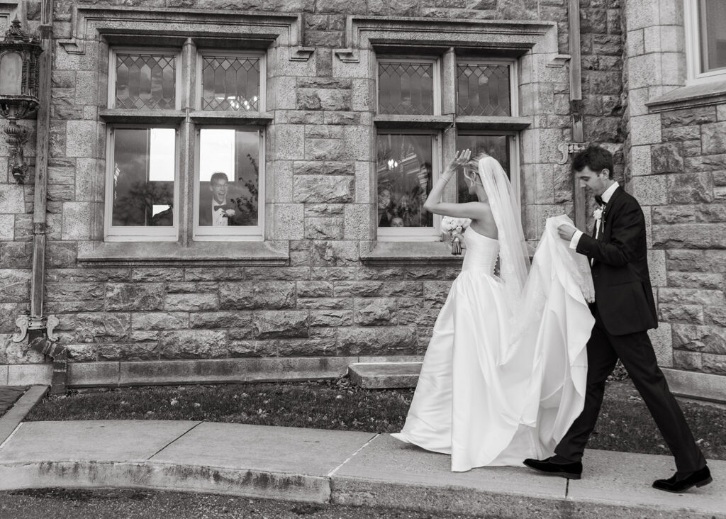 A November wedding at the Branford House in Groton, Connecticut. Kristen and Owen celebrated their wedding day surrounded by their closest family and friends. Their day was one of windiest days I’ve ever been a part of and the wind gusts allowed us to create images so full of life. As a Branford House wedding photographer a wedding day like this is less about directing and more about observing. It’s about noticing the way they reach for each other without thinking, the way their families lean in close during toasts, the way the room glows once dinner begins. Shot on both film and digital, their images carry that same softness and depth — romantic, warm, and quietly timeless.